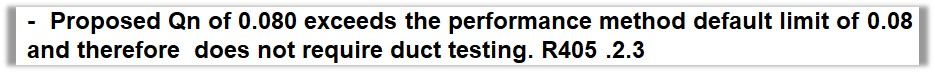 - This message will display at the bottom of R405-20 stating duct testing is not required