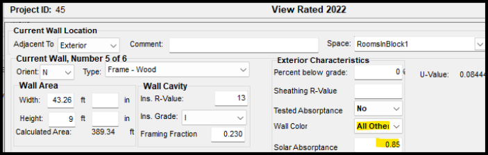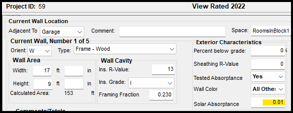 A: Select Yes for Tested Absorptance for homes modeled with HERS 2022.