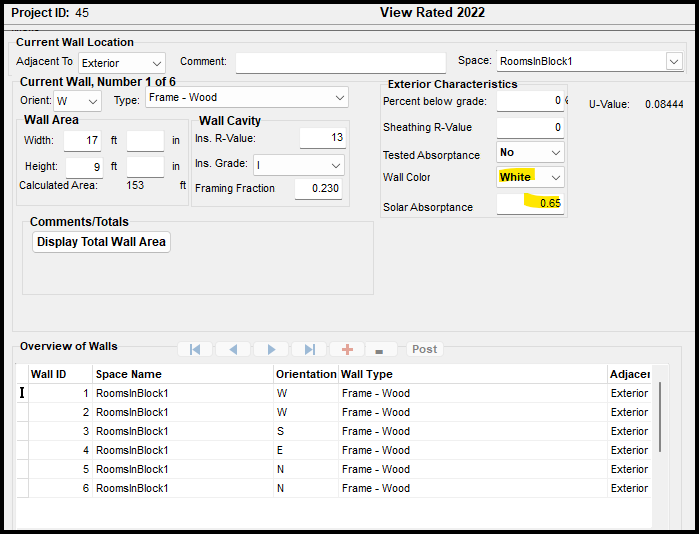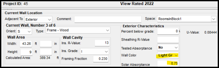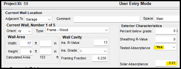 - It doesn’t appear that choosing the wall color changes the solar absorptance, so we have to change both, correct?